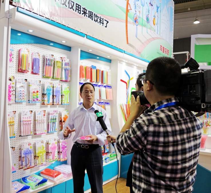 當天,還有聞風而來的包括央視、浙江衛(wèi)視、金華衛(wèi)視、義烏電視臺在內的數(shù)家媒體將雙童的展位圍了個水泄不通。大家認真聽著董事長樓仲平講述關于一根吸管的變奏,一根簡單的吸管,通過創(chuàng)新,通過技術改造,利潤從幾分錢變到幾塊錢,究其本質,還是歸功于創(chuàng)新。創(chuàng)新吸管已經(jīng)不僅僅是用來喝飲料了,它更集趣味性、情感性、功能性于一體,小吸管窺探大世界。