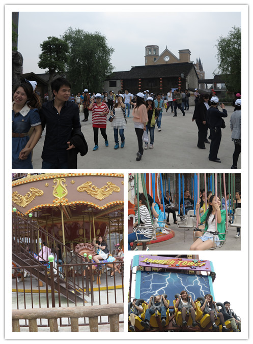 吃完了中飯,我們終于來到了今天的重頭戲——宋城啦!置身宋城,恍如隔世。給我一天,還你千年!由于“宋成千古情”表演兩點才開始,在兩點之前,都是我們的自由活動時間。霎時間,宋城的怪街、市井街、城樓廣場,打鐵鋪等特色景點都有我們雙童“小白帽”的身影。還有宋城去年剛開發(fā)出的游樂場里,更是我們“小白帽”的天下了??次覀冸p童的員工們,一個比一個膽子大,黑旋風(fēng)、神行太保、云里金剛、鬼屋……大家伙怎么刺激怎么來,平時工作認真,玩起來也一點不含糊啊!