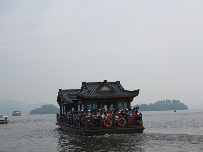 首先,第一站就是美麗的西子湖畔。不過,同往年不同的是,今年的旅游行程并不是沿途徒步欣賞美景,而是乘坐龍船,在碧波蕩漾的水面上欣賞西湖另一角度的美景。不過,由于我們雙童人數(shù)眾多,要整整三艘龍船才能載得下呢!為了更好地識別我們的“雙童人”,我們每個人都發(fā)到了一頂印有雙童標志的小白帽,在公司內(nèi)以證示人,在公司外就要以帽示人啦!看,一整船的小白帽,是不是很壯觀呢?