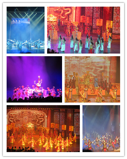 千呼萬喚始出來,兩點一到,宋城千古情終于向我們掀開了她神秘的面紗。在舞臺上,大氣磅礴的金鑾殿、小橋流水的西湖畔、金戈鐵馬的沙場會瞬間出現(xiàn)在你的眼前。燈光璀璨中,霓裳羽衣跳出一段絕代風(fēng)華,金剛鐵甲演繹一段壯烈的歷史之歌,青蘿粉衣更是帶來了一段難忘的愛情故事。笙歌管弦、歌舞雜技,此起彼伏,熱鬧非凡,一派歌舞升平的景象。