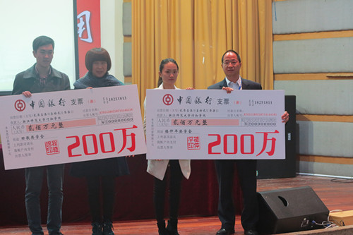 同日,身為浙師大兼職教授的樓總也以個人的名義在浙江師范大學成立了一個“樓仲平基金會”,每年規(guī)劃獎學金去幫助學校里有需要的學生,鼓勵他們更好地學習和完成學業(yè)。樓總也希望通過校企合作的方式讓一部分學生把我公司作為學生的實習基地。