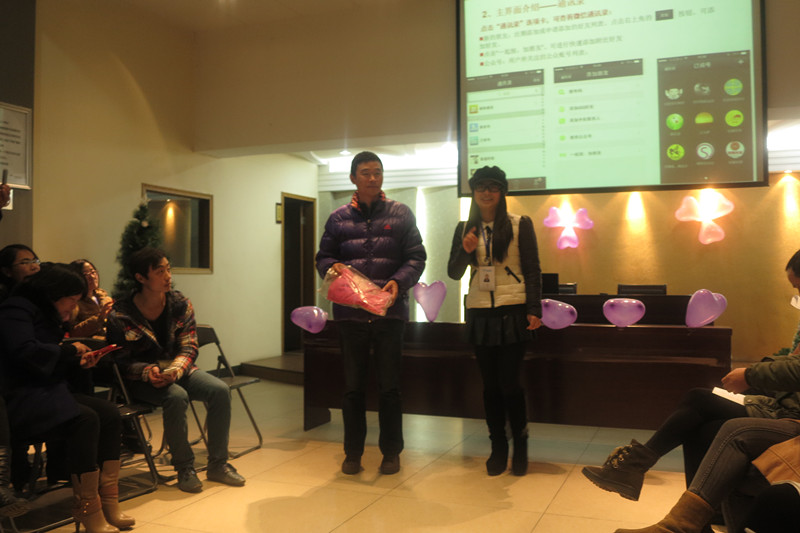 由雙童TV贊助播出的雙童學習會開始了!學習會的第一個環(huán)節(jié)是通過數(shù)7的游戲來談談自身對微信、微博的使用心得。才不過一會兒,幾位反應速度不夠快的小伙伴就被拉到臺上分享啦!有的說微信教會了他如何交到新朋友,有的說微博可以給她提供最新的新聞,還有的說可以通過這些新媒體社交軟件讓自己更加得潮呢!當然了,也有的小伙伴落后了一步,坦言他還不怎么會用這些東西。所以,接下來的第二個環(huán)節(jié)就是由我們的主持人教引大家如何使用微信。通過我們美女主持人面對面解說,大家現(xiàn)場拿出手機邊學邊使用,隨時學到了一點技能就馬上做測試,往朋友圈里發(fā)各種學習文章,學會給別人點贊,互相比誰的好友更多,快樂的學會了如何使用微信。微信,So easy!