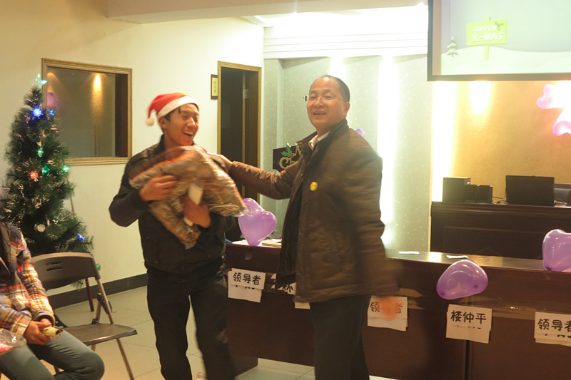 貼完胡子,大家期待已久的圣誕抽獎活動緊接著展開了。由雙童吸管CEO樓仲平先生、芒果智造CEO安然先生、雙童進出口CEO張國俊先生抽出了這次活動的特等獎、一等獎、二等獎和三等獎,圣誕樹、坐墊、保鮮盒、蒸蛋機、豆?jié){機……原本擠了滿滿一大箱的獎品由三個CEO一個個交到了幸運兒的手中,看他們喜開顏笑的樣子,真是讓小編好生羨慕啊!