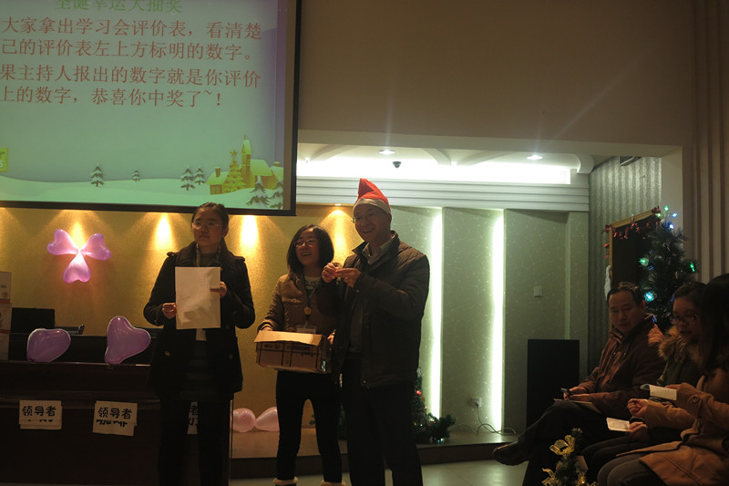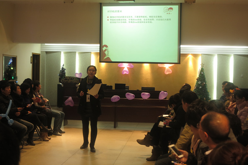 12月23日,每周一次的雙童學習會繼續(xù)在雙童九樓活動室舉行。本次的學習會主題是圣誕節(jié),主持人是文宣部的三位“不靠譜”的美女主持人??纯次覀兊膶W習會現(xiàn)場,到處都充滿了圣誕氣息,除了供應商友情贊助的十幾顆大大小小的圣誕樹之外,更有幾位“不靠譜”文宣部美女純手工制作的雙童版圣誕樹,現(xiàn)場布置的很活潑、很溫馨有木有!