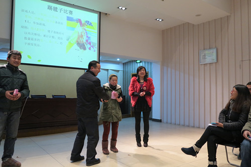 上完了課之后,萬眾期待的小游戲終于開始啦!這次的游戲獎品可是由張經(jīng)理從國外帶回來的哦!第一個游戲是踢毽子,看大家踢的,就快要飛起來啦!樓總也童心未泯,輪不到上臺表演,就偷偷拿著個毽子去臺下玩了起來。最后,由我們車間的美女獲得了這次游戲的冠軍,話說小編也好想知道她獲得的獎品是啥呀!