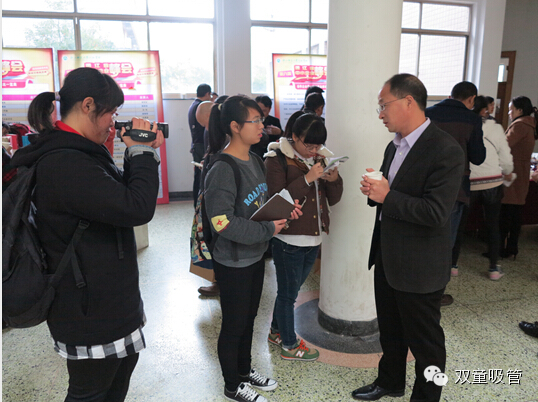 由于路上堵車,一趕到浙師大,連口茶還沒來得及喝呢,樓總就被送上了講臺,和一大屋子來自各個專業(yè)的大學(xué)同學(xué)們進行了互動和交流。樓總和大家分享了夢想的話題:無論您的昨天是怎么度過,無論您的今天是多么微卑,只要您內(nèi)心充滿夢想,一個人的成功,歸根到底,就是一步步持續(xù)的積累。每一秒鐘的積累成為今天這一天;每一天的積累成為人的一生。那些讓人驚奇的偉業(yè),幾乎都是極為普通人兢兢業(yè)業(yè)、一步一步持續(xù)積累的結(jié)果。當(dāng)然了,同學(xué)們依舊對我們雙童的創(chuàng)新吸管最感興趣,哦不,不光光是同學(xué)們,連在一旁的領(lǐng)導(dǎo)們都目不轉(zhuǎn)睛呢!