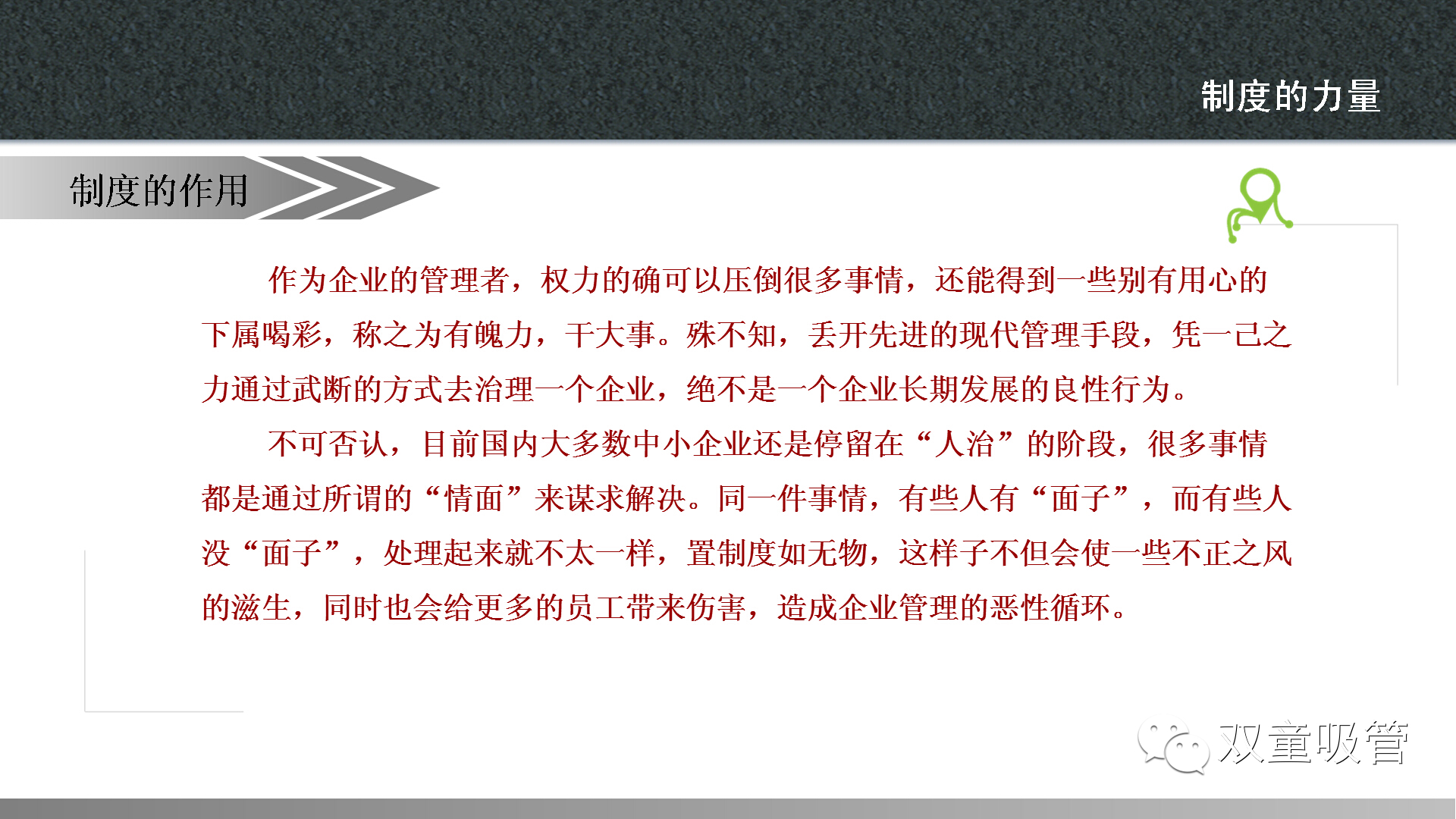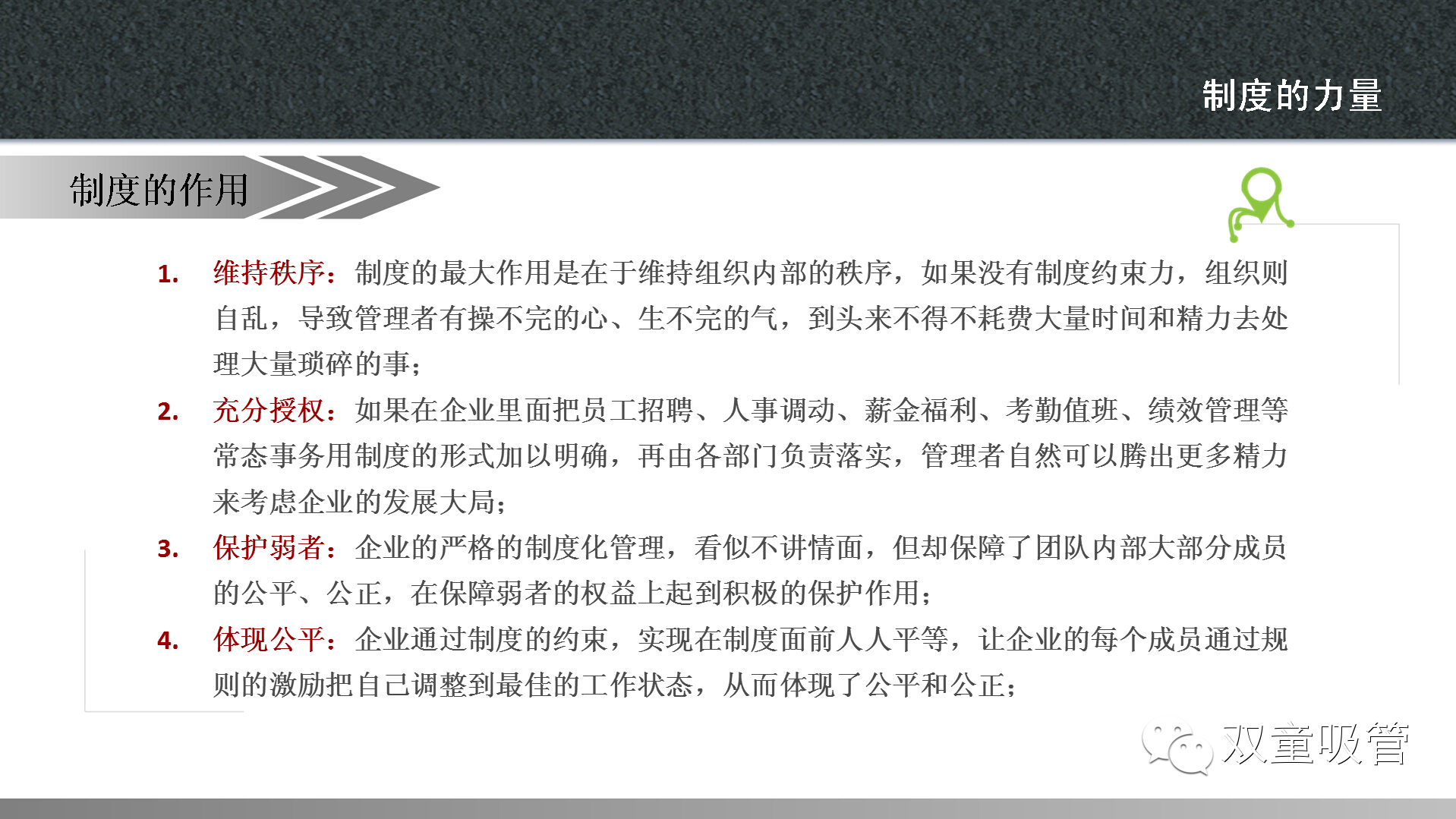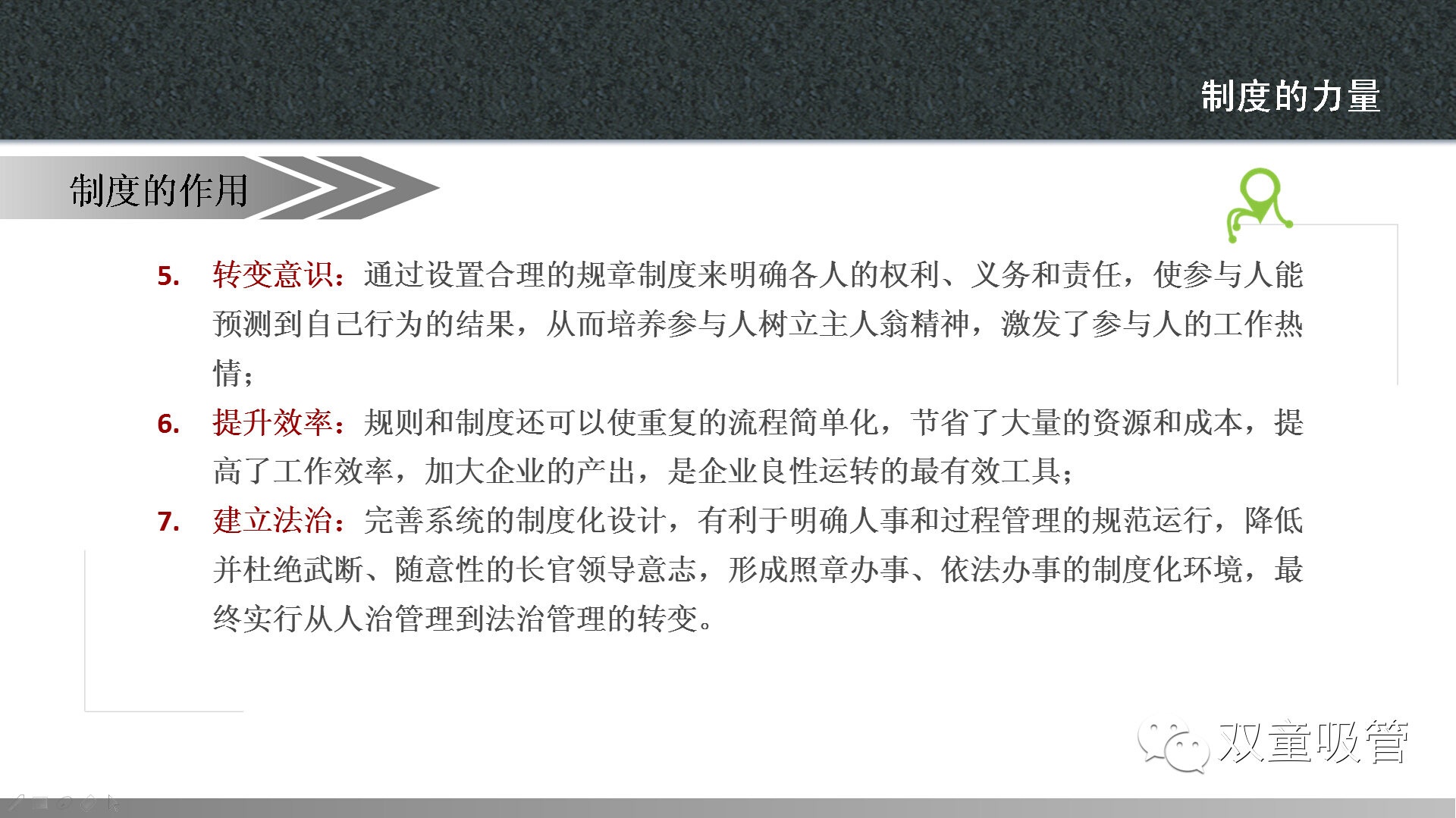 當(dāng)然啦,這樣的案例,當(dāng)家人準(zhǔn)備了許多,讓大家在快樂中學(xué)習(xí)到了制度的魅力。以前吸管妞總是有一種誤解,覺得制度就是上級用來管理下級的一種方式。通過昨天的課程終于讓妞明白了,原來制度不僅僅是有利于上級管理,更有利于雙方的權(quán)利得到保障,讓公司的流程化管理更加準(zhǔn)確高效!下面,吸管妞就把干貨放上來,大家可要好好看哦!