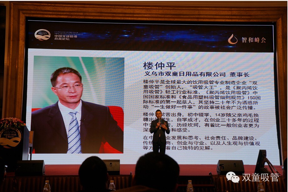 今天早上,中國實效管理論壇在深圳中海凱驪酒店盛大開幕!我們雙童董事長樓總與常務副總李二橋參加了此次論壇,樓總也將作為講師在下午進行課題分享《雙童為什么堅持只做一根吸管》。看!樓總和李副總在會前還來了一個合影,倆人穿得還是挺紳士的吧?