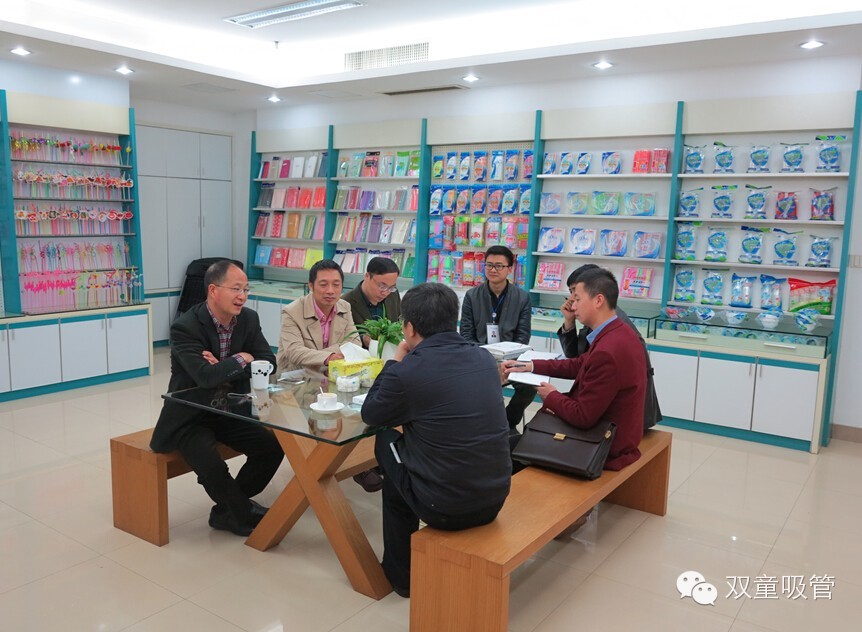 小劉記者剛走沒多久,兩批貴客像是約好了似的都來到雙童。一批是我們的義烏市紀(jì)委書記等六七位領(lǐng)導(dǎo),另一批則是二三十號(hào)阿里巴巴同學(xué)會(huì)的boss們。我們的幾位高層領(lǐng)導(dǎo)分頭行動(dòng),帶領(lǐng)著這兩支隊(duì)伍參觀雙童的節(jié)能降耗、員工寢室、產(chǎn)品樣品房……不得不說,幾位領(lǐng)導(dǎo),你們真是蠻拼的,可以去考導(dǎo)游證啦!尤其是當(dāng)家人,在“導(dǎo)游工作”結(jié)束后,搖身一變成了會(huì)議室里的“講師”,為我們的阿里巴巴同學(xué)會(huì)的boss們上了一堂精彩的《“雙童”為什么堅(jiān)持只做一根吸管》課程,到今天,都還有同學(xué)來找吸管妞要昨天的課件呢!