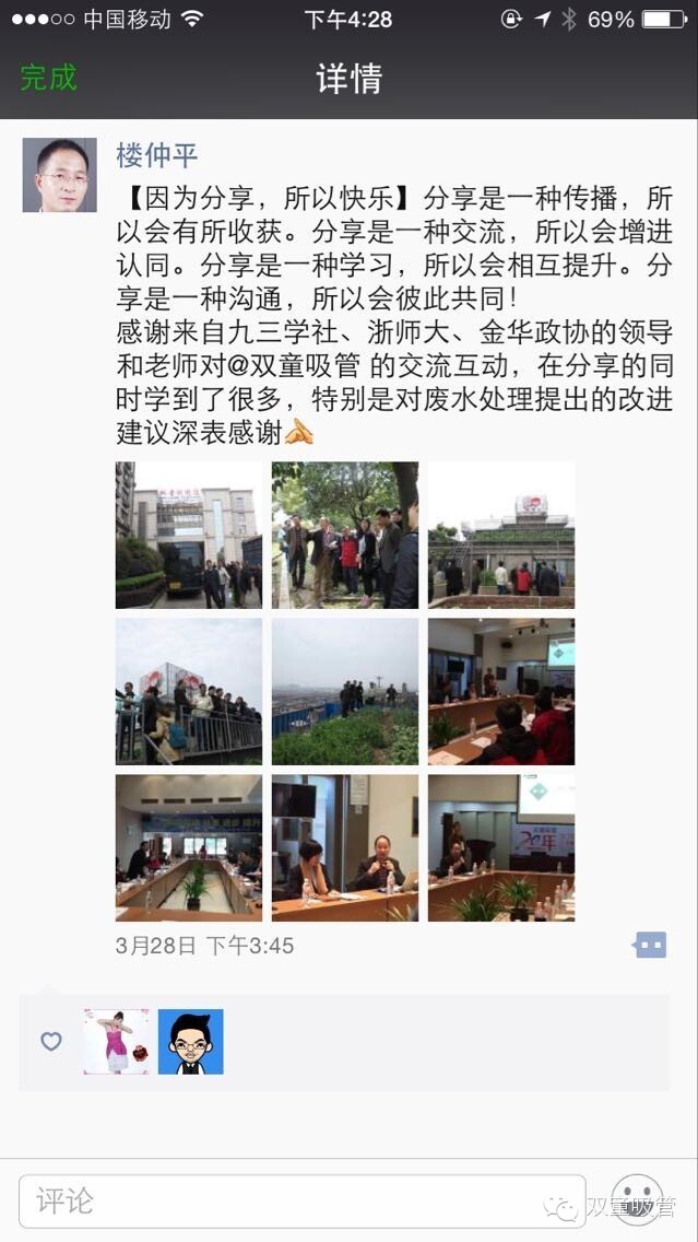 當家人在朋友圈里發(fā)了感慨:分享是一種傳播,所以會有所收獲。分享是一種交流,所以會增進認同。分享是一種學習,所以會相互提升。分享是一種溝通,所以會彼此共通!感謝來自九三學社、浙師大、金華政協(xié)的領導和老師對@雙童吸管 的交流互動,在分享的同時學到了很多,特別是對廢水處理提出的改進建議深表感謝!