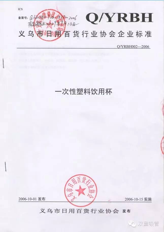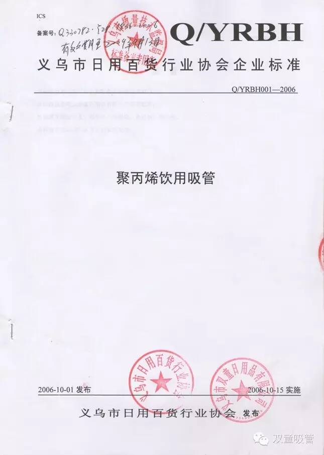 雙童吸管的掌門(mén)人樓仲平介紹,1996年開(kāi)始,受吸管產(chǎn)品進(jìn)入超市銷(xiāo)售的條形碼所限,雙童首次著手企業(yè)標(biāo)準(zhǔn)化建設(shè)。通過(guò)十年時(shí)間,公司在吸管制造領(lǐng)域取得了大量技術(shù)積累,產(chǎn)品的技術(shù)指標(biāo)和理化指標(biāo)大幅提升,并積累出巨量的產(chǎn)品技術(shù)信息和行業(yè)動(dòng)態(tài)信息,并在2006年9月完成了《聚丙烯飲用吸管》和《一次性塑料飲用杯》行業(yè)標(biāo)準(zhǔn)的起草編制,成為當(dāng)時(shí)義烏歷史上第一件真正意義的日用品行業(yè)協(xié)會(huì)標(biāo)準(zhǔn)。
