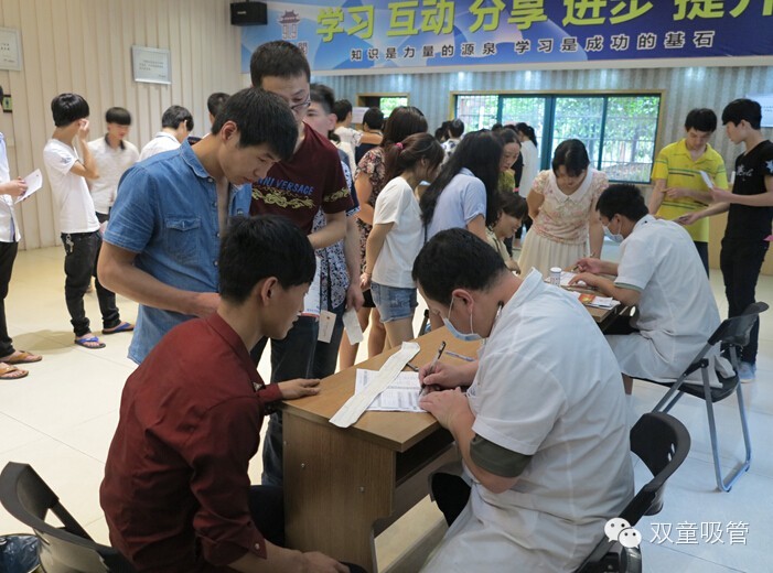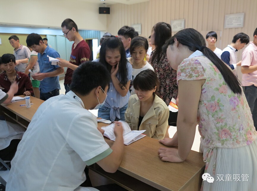 看看,這幾個妹子,在抽血項目前也是體現除了女生的嬌弱一面,怕怕的表情讓吸管君蹲守在這個項目邊都舍不得離開!而胸透項目時,大家都需要輪流站在機器面前抱著機器“掃一掃”,看著也是萌萌噠!