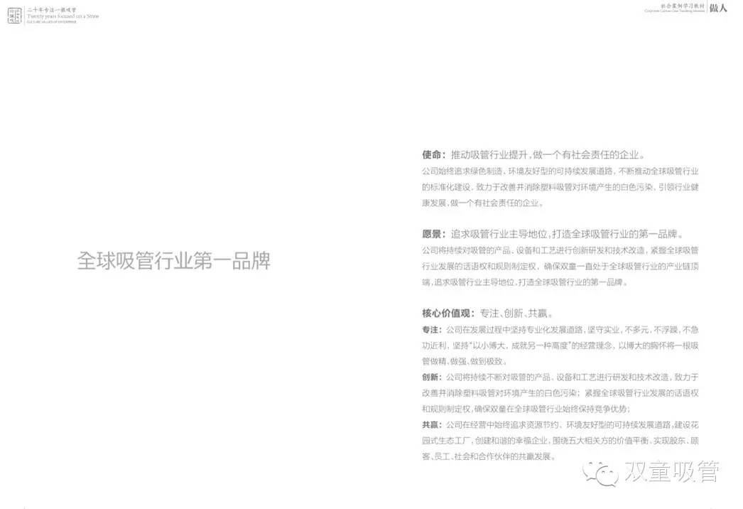 雙童新愿景:追求吸管行業(yè)主導地位,打造全球吸管行業(yè)的第一品牌。