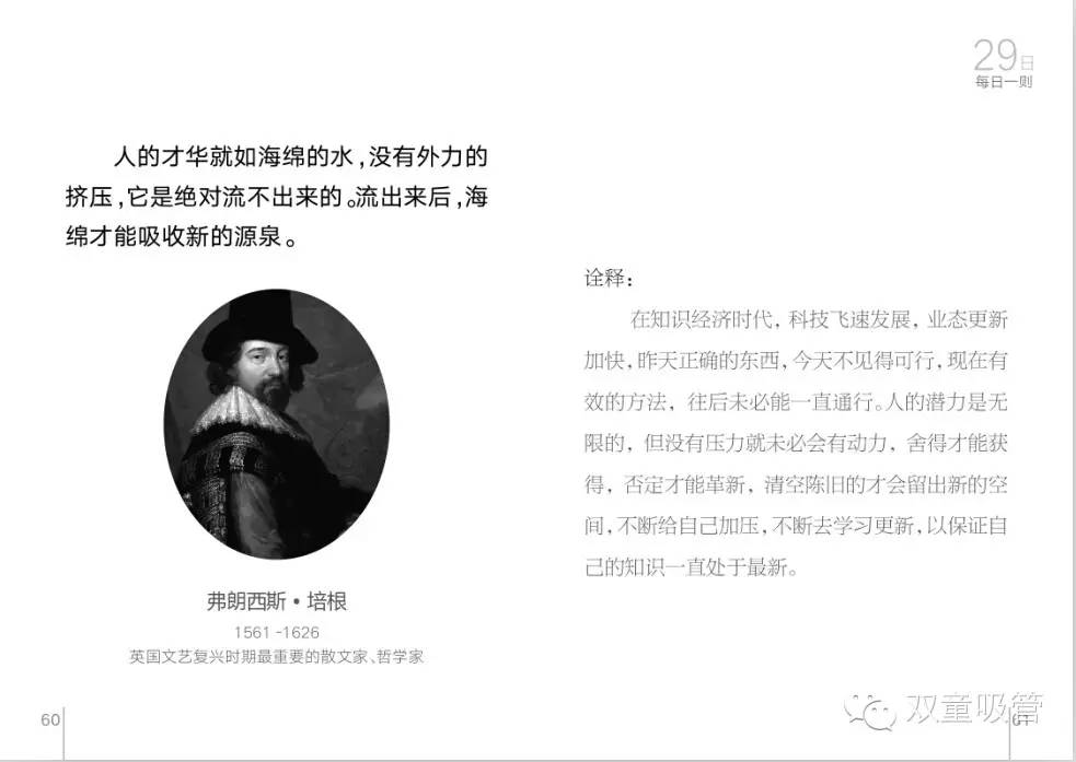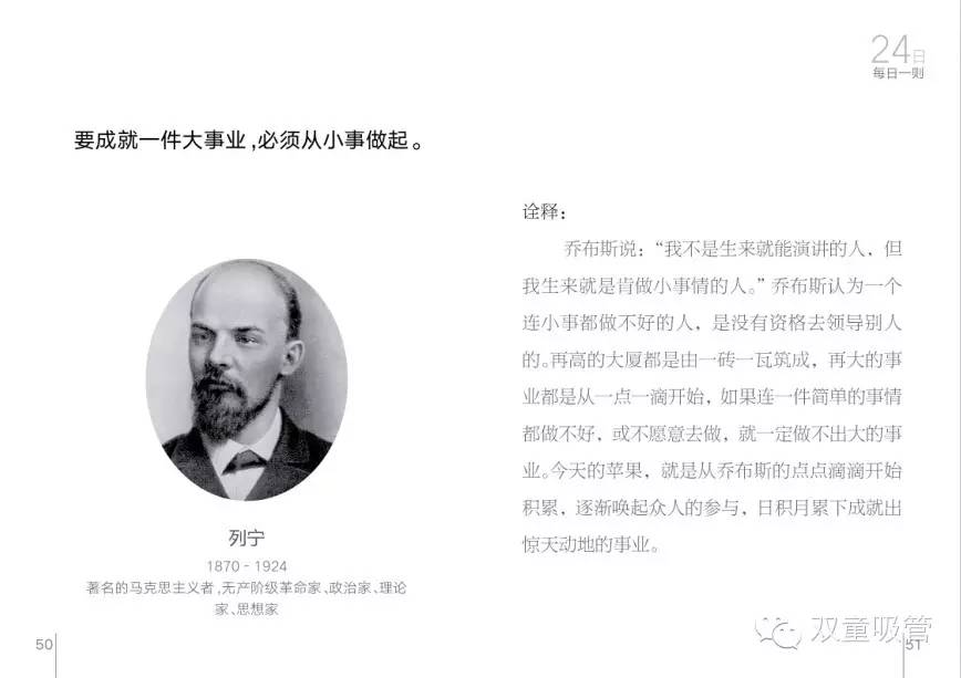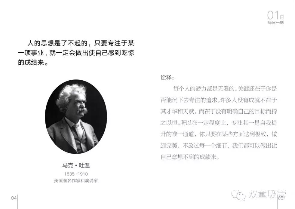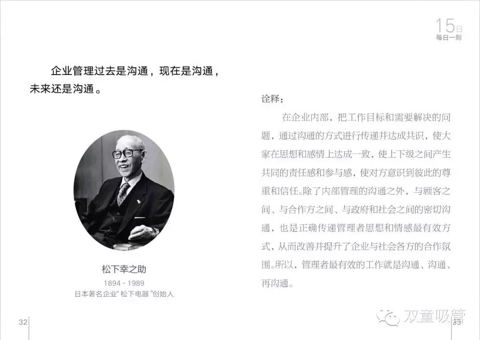 而這一本《每日一則》將會在印刷成冊后發(fā)給雙童的每一位員工,要求員工每天都按照上面的日期標(biāo)號進(jìn)行誦讀理解,一個(gè)月31篇,一年就可以將每篇名言都誦讀12遍。