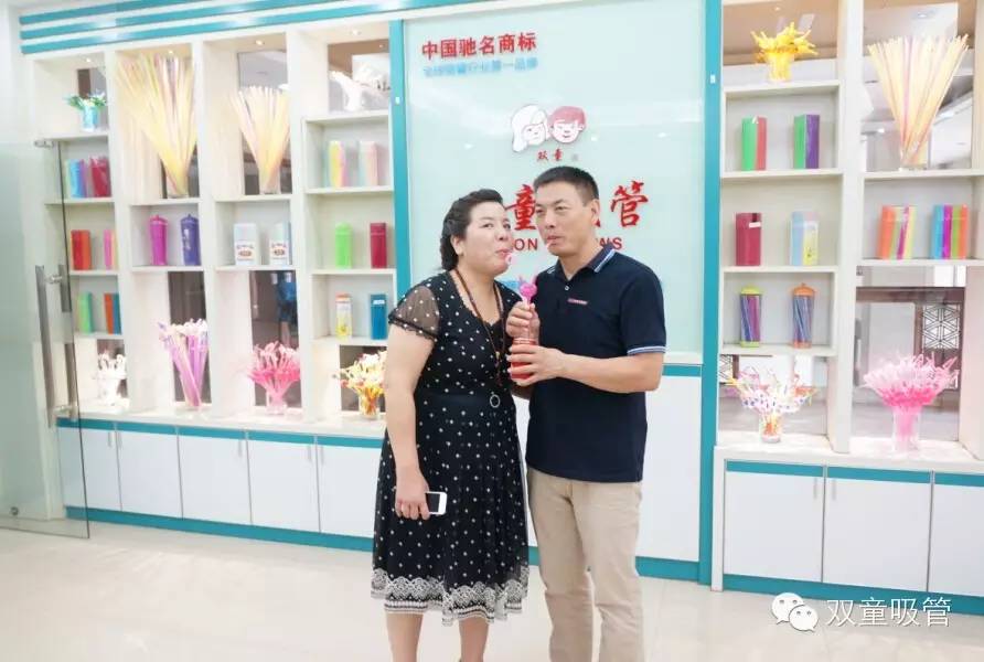 最后奉上一張精彩的花絮照片:義烏市日用百貨行業(yè)協(xié)會宗產(chǎn)貴會長與夫人一起共用雙童的愛心吸管,是不是特別有愛呢?