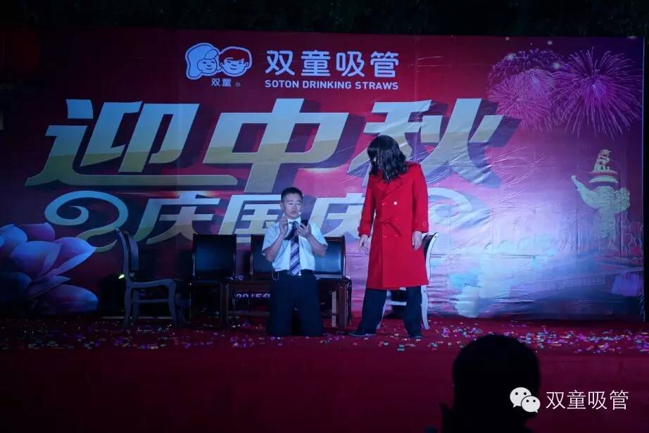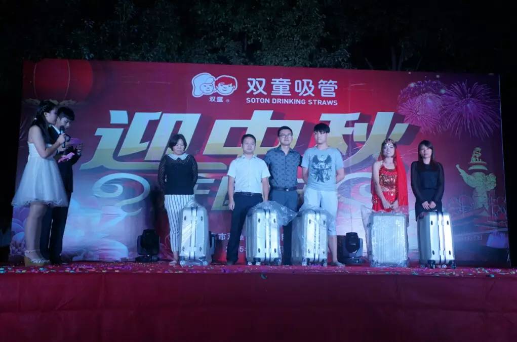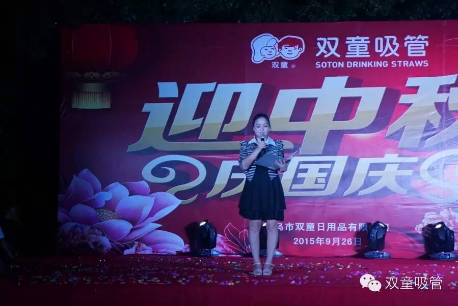 9月26日晚,在雙童廠區(qū)內(nèi),我們舉辦了一場(chǎng)盛大熱鬧的“迎中秋,慶國(guó)慶”文藝晚會(huì),全廠員工都匯聚臺(tái)下參與晚會(huì)互動(dòng),節(jié)目那是相當(dāng)精彩,類(lèi)型那是相當(dāng)?shù)呢S富!作為主持人和參演人員的吸管妞,經(jīng)過(guò)兩天的修養(yǎng),迫不及待地想和大家分享回顧一下節(jié)目的精彩盛況啦!