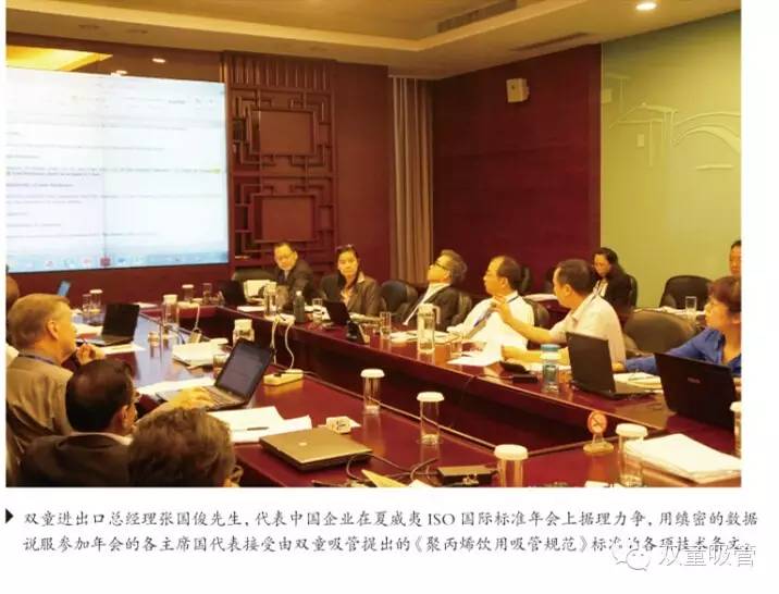 2008年《聚丙烯飲用吸管》國家標準在義烏天恒酒店審核通過標準起草委員會成立后,雙童吸管代表中國企業(yè)會同國家標準化委員會專家小組,在2012年6月初召集國內(nèi)吸管行業(yè)的十多家生產(chǎn)企業(yè)在義烏天恒酒店召開了《聚丙烯飲用吸管規(guī)范》國際標準國內(nèi)分組研討會,通過與會企業(yè)和標委會專家的討論分析,決定采用屬地原則的有利條件,在中國國家標準的基礎(chǔ)上進行國際標準的條文延伸和編輯,以在最大程度上有利于中國吸管行業(yè)企業(yè)的健康發(fā)展。