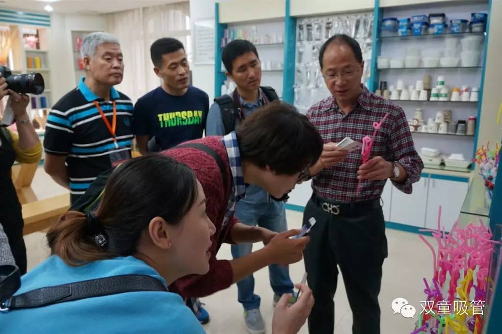 接著,網(wǎng)絡媒體團的一行眾人先是來到了位于綜合樓二樓的創(chuàng)新吸管樣品室,由樓總向眾人介紹我們的一系列創(chuàng)新吸管產(chǎn)品。一款款創(chuàng)意十足、富有童真的創(chuàng)新吸管引起了大家的強烈關(guān)注,尤其是幾位女記者們,簡直是愛不釋手!而當看到我們的可降解吸管時,則紛紛點頭贊許雙童的環(huán)保理念。