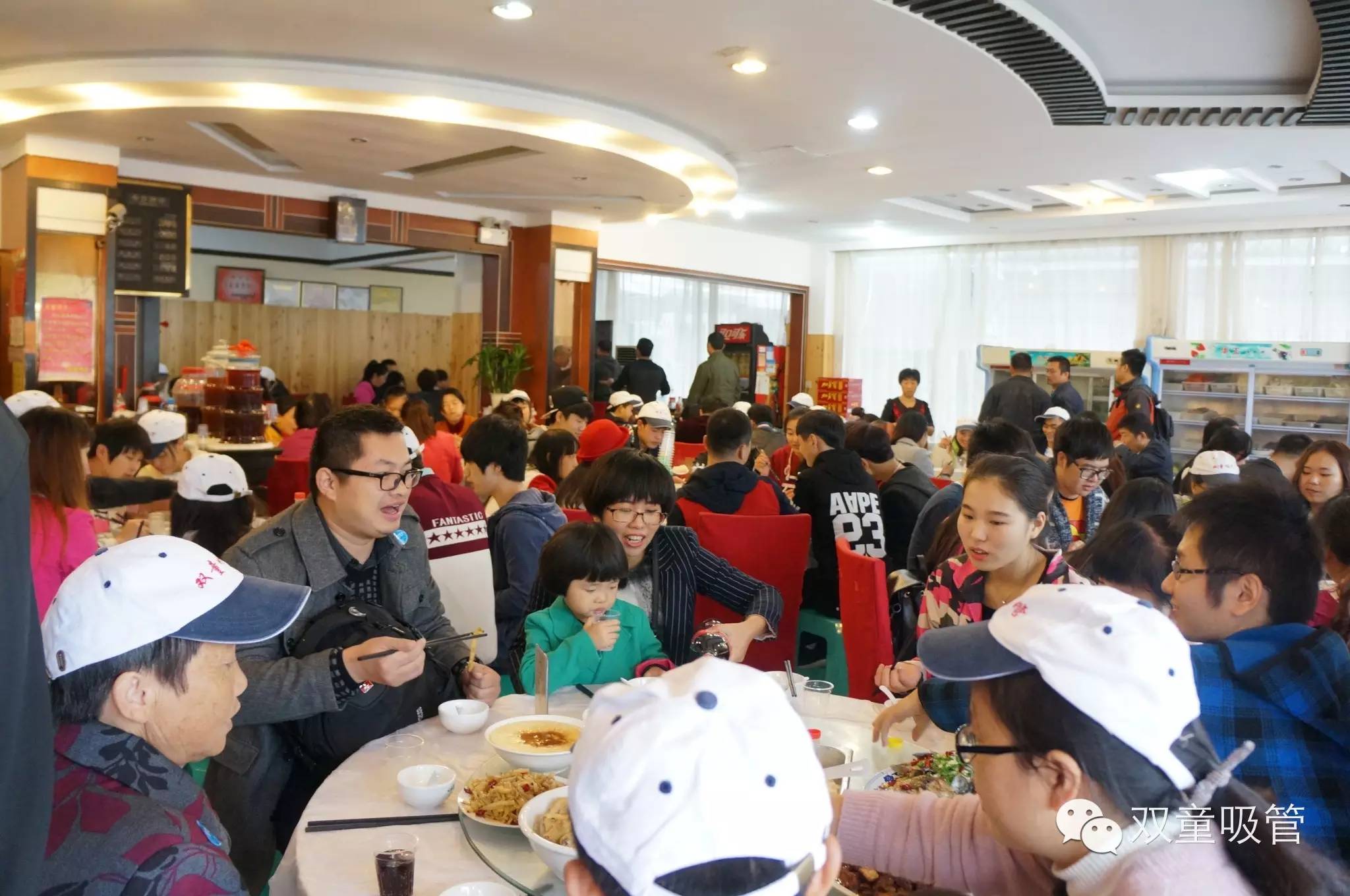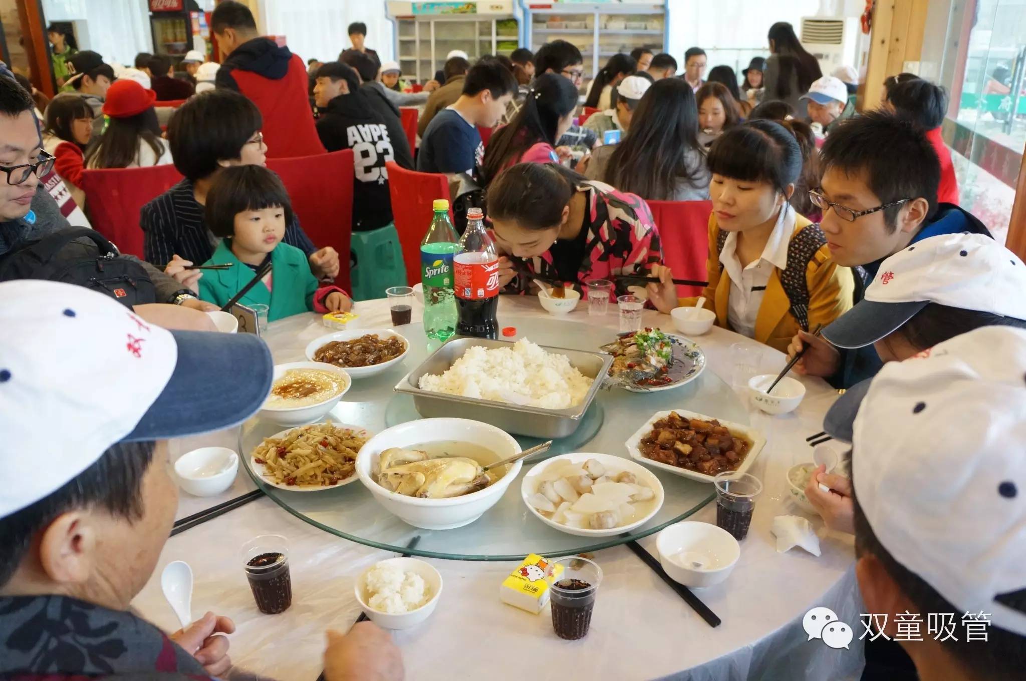 雖然時間還早,由于下午還要去往神仙居拜訪神仙,所以我們就趕緊去填肚子啦!于是,雙童又一次承包大酒店,這景象,熱鬧的呀?。。?/span>