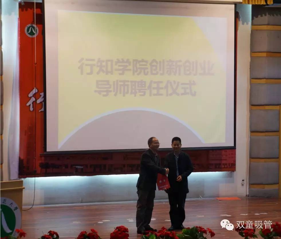 下午兩點半,宣講會正式開始!首先是舉辦了一個簡單隆重的導師聘書授予儀式,當家人樓總從校領導手中接過了這份創(chuàng)新創(chuàng)業(yè)導師的證書,也意味著我們雙童和學生們的交流也會更加頻繁,和校方以后會合作得更加緊密!