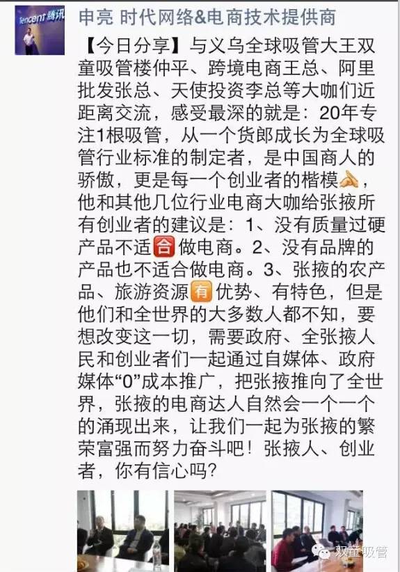 就在26日下午,在青巖劉網(wǎng)上服務(wù)中心的三樓,義烏共濟(jì)創(chuàng)客空間舉辦了一場(chǎng)主題為“移動(dòng)互聯(lián)網(wǎng)時(shí)代的創(chuàng)新與發(fā)展”小型分享沙龍,不大的會(huì)場(chǎng)被張掖市的百余名電商精英擠得滿滿當(dāng)當(dāng),人氣非常旺。我們的當(dāng)家人樓總也一早被請(qǐng)到會(huì)場(chǎng),擔(dān)當(dāng)此次沙龍的分享嘉賓之一,和各位精英們分享他的經(jīng)營(yíng)心得和對(duì)電商發(fā)展的看法。吸管妞非常遺憾地沒有參加此次盛會(huì),不過看到參會(huì)精英們分享的朋友圈,就知道當(dāng)家人樓總的分享又觸動(dòng)了不少人啦!