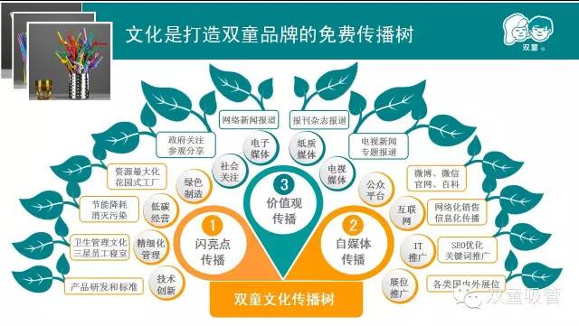 2009年在互聯(lián)網(wǎng)進入快速發(fā)展初期,雙童開始“自媒體的傳播”?!拔芫薄ⅰ拔苕ぁ钡奈幕?,微博、微信的傳播這些文化成為了雙童打造品牌的免費傳播樹!