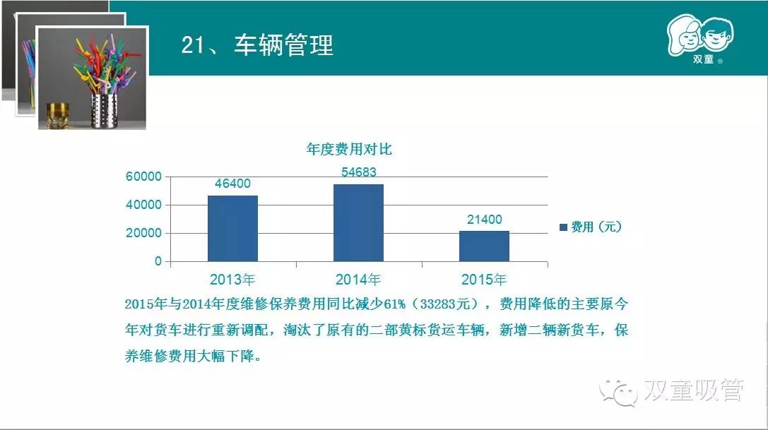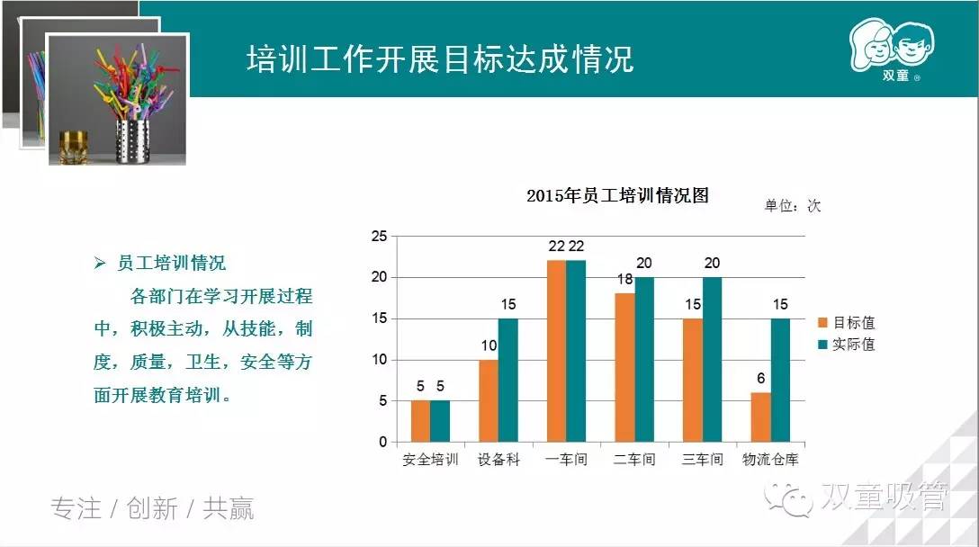 而在昨天的“雙童吸管2015年述職報告”會議上,包括總經(jīng)理李二橋在內(nèi)的4位述職人員,就用翔實的數(shù)據(jù)、充足的事例,向在座的各位同事闡述了各部門一年來的工作成果與缺點不足,并對新一年的工作目標(biāo)做出了合理規(guī)劃。