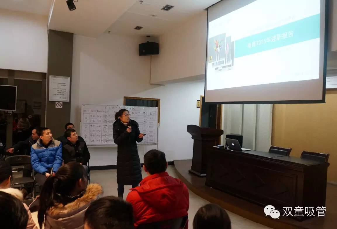 最后,電商科主管焦琴對雙童電商科2015年度工作進(jìn)行述職。雙童的電子商務(wù),是當(dāng)家人樓總大力支持并寄予厚望的產(chǎn)品銷售渠道。雙童電商在阿里、天貓、京東、一號店等各大電商平臺都開設(shè)旗艦店,有了這么多平臺的支持,電商科一年來的銷售也是順風(fēng)順?biāo)?,年初定下的各項指?biāo)數(shù)據(jù)也都能完滿達(dá)成。