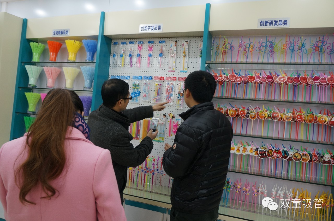 首先第一站,就是我們的樣品房。李總向他們詳盡地介紹了產(chǎn)品的種種類別,從普通吸管、藝術(shù)吸管介紹到我們的創(chuàng)新吸管和生物質(zhì)可降解吸管。記者們也由衷地感慨:沒想到這么小的產(chǎn)品還能變出這么多的花樣!吸管妞想說,那么雙童接下來還有更多的驚喜等著你們呢!