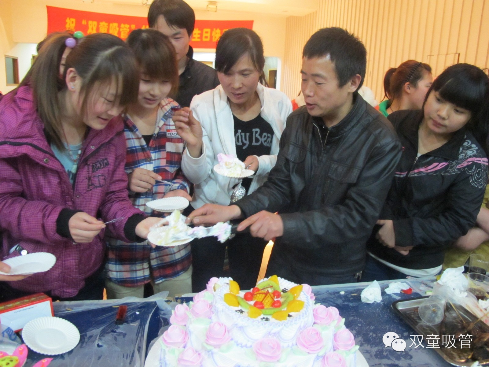 王召文在生日會(huì)上為員工切蛋糕