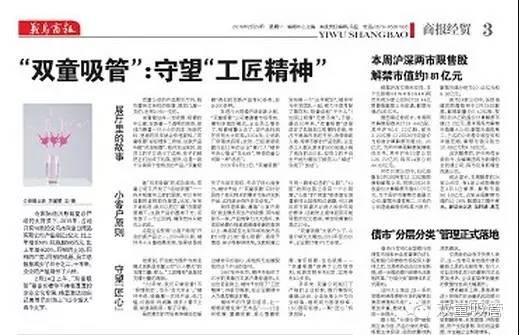 2月24日上午,“雙童吸管”董事長樓仲平捧著厚厚的企業(yè)文化專輯,略顯激動地向記者展示封面上“以小博大”四個(gè)大字。