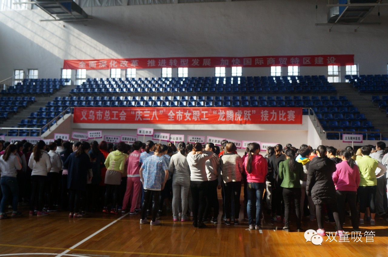 3月4日,為響應(yīng)總工會的號召,我們雙童派出了8位女神出征全市女職工“龍騰虎躍”接力比賽。賽場上可謂是巾幗云集,全市各大單位的女職工匯聚,絕對是一道亮麗的風(fēng)景線!比賽一開始,各位女神的賣力表現(xiàn)就贏得了在場觀眾的所有掌聲和喝彩!別看她們坐在健身球上很輕松,其實跳一輪回來,也是挺累的呢!那個啥,最終雙童的比賽成績吸管妞就不說了,反正參與為主嘛!圖個樂呵,樂呵……