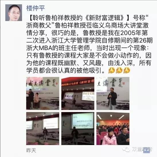 吸管妞感言:魯教授說,企業(yè)家是國家經(jīng)濟(jì)的脊梁,中國實(shí)在太需要一大批企業(yè)家了。當(dāng)今中國,企業(yè)如雨后春筍,但真正具備企業(yè)家素質(zhì)的人才奇缺。希望經(jīng)過魯教授的授課后,我們義烏的老板們能夠真正的有所思,有所悟,認(rèn)真專注地做企業(yè),為建設(shè)美好的義烏貢獻(xiàn)更大的力量!