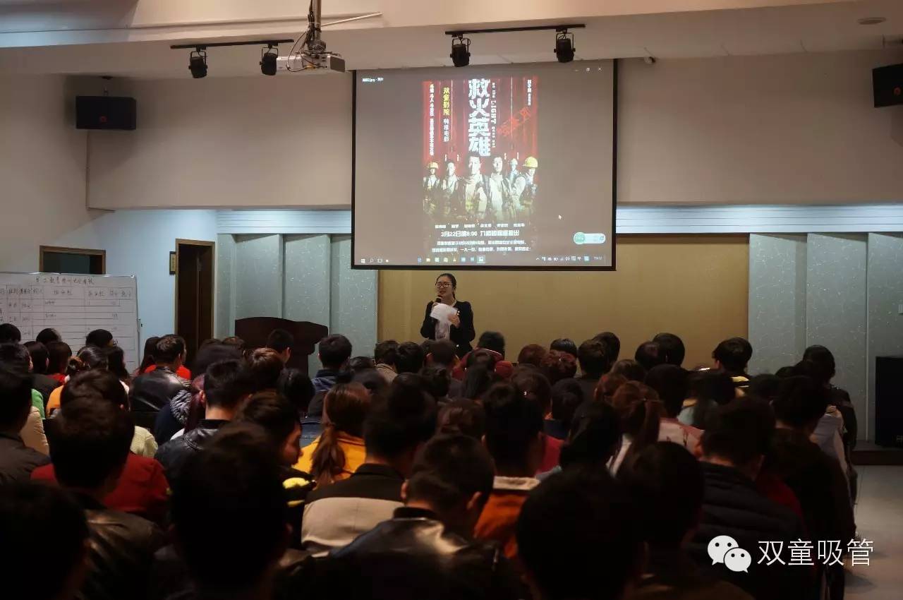 這不,在員工們齊聲誦讀每日一則中學習會也拉開了序幕。吸管妞特地宣傳了3月安全月我們雙童影院特推的電影《救火英雄》,怎么樣?大家是不是很心動呢?