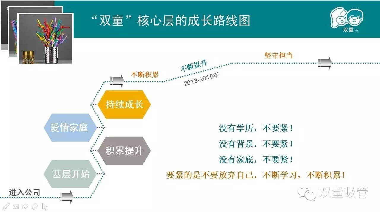 而為了增強(qiáng)說(shuō)服力,當(dāng)家人還舉了不少雙童人自己的例子。從普普通通的一個(gè)員工開(kāi)始做起,一步步提升進(jìn)步,穩(wěn)扎穩(wěn)打,在雙童實(shí)現(xiàn)了事業(yè)家庭的夢(mèng)想的人不在少數(shù)!樓總說(shuō),我們的李總、廠長(zhǎng)、車(chē)間主任等等,都是我們身邊最鮮活的例子!他們不僅在雙童升職加薪,還在雙童泡妞生娃呢!