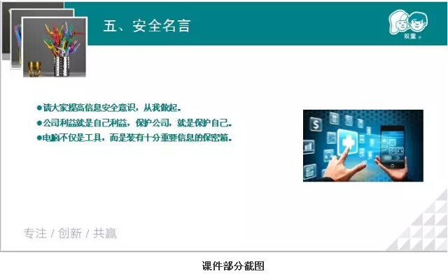 親愛(ài)的雙童粉絲們,你們的公司注重信息安全嗎?吸管妞以前并不覺(jué)得信息安全多么重要,但是經(jīng)過(guò)昨晚的學(xué)習(xí)會(huì),吸管妞總算明白啦!下面,吸管妞就和大家講講昨晚上,我們的辦公室主任吳小彬擔(dān)任講師,為我們所有行政員工分享的《公司信息安全管理規(guī)范》課程吧!
