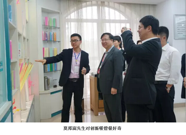 隨后,大家來到了樣品房,二當家李總給眾人介紹了雙童一路走來的艱苦歷程以及一直以來堅持的理念,和不斷創(chuàng)新的精神,客人們都頻頻點頭,表示認同樓總的觀點和做法。二當家李總表示,除了專注吸管外,企業(yè)一定要重視創(chuàng)新,并給各位教授們介紹了雙童各色的的吸管,這些不同功能不同設計的吸管讓大家感覺新奇異常。