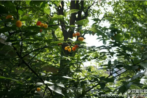 在這一片綠色海洋里,閃著誘人光芒的果實更顯得引人注目啦!在“雙童”,果樹可是隨處可見,柚子樹、柿子樹、葡萄樹、桃樹、枇杷樹、石榴樹、櫻桃樹……這么多的果樹,保證了我們一年四季都有水果豐收!而現(xiàn)在,正是“雙童”櫻桃的成熟季!
