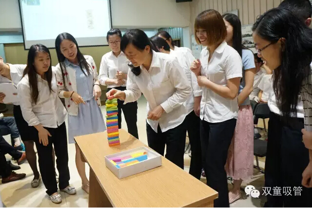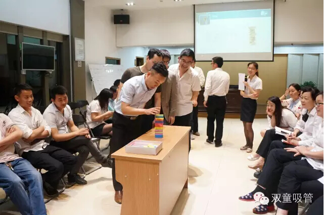 一開場(chǎng),咱們的焦琴講師就安排了一個(gè)小游戲:把大家分成五組,由每一組的成員在桌子上擺一塊積木,看哪一組的積木堆積的最多。小心!小心!要倒拉!現(xiàn)場(chǎng)觀眾的聲音此起彼伏,玩游戲的隊(duì)員們也是即緊張又興奮,個(gè)個(gè)笑的都快合不攏嘴了喲!當(dāng)然,這個(gè)游戲可不是純粹讓我們來搞笑的!這個(gè)游戲告訴我們,團(tuán)隊(duì)中一切行為不僅代表你自己,你的作用的行為往往會(huì)影響團(tuán)隊(duì)的全部!