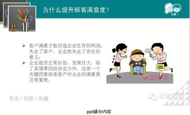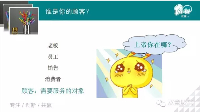 接下來,講師從“誰是你的顧客”來展開話題討論,顧客其實(shí)就是你所要服務(wù)的對(duì)象,我們要了解顧客真正所需要的是什么?除了優(yōu)質(zhì)的產(chǎn)品,更是滿意的服務(wù)??蛻魸M意才能創(chuàng)造企業(yè)生存的利潤;失去了客戶,企業(yè)就失去了存在的意義。