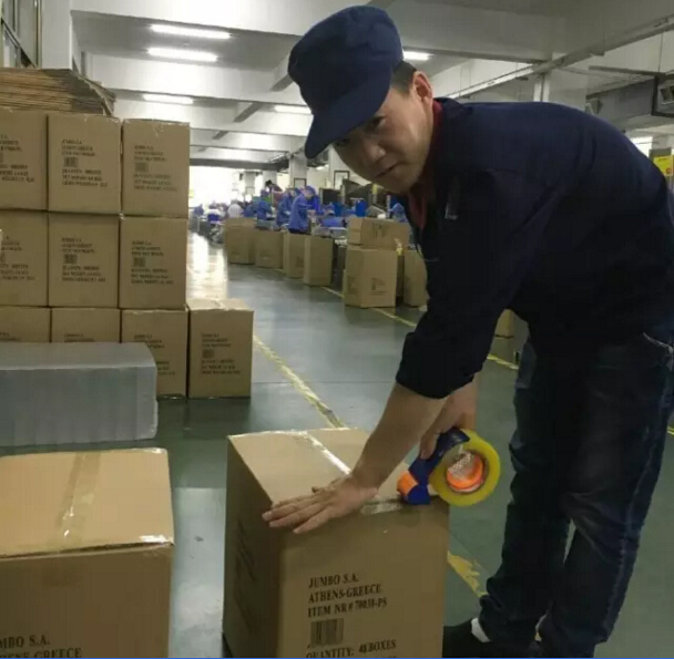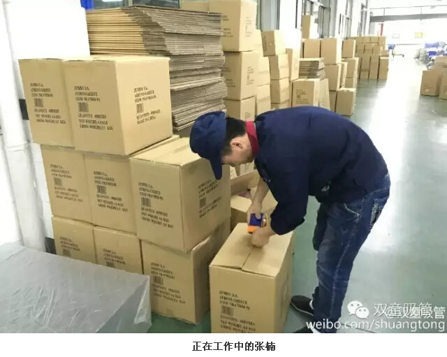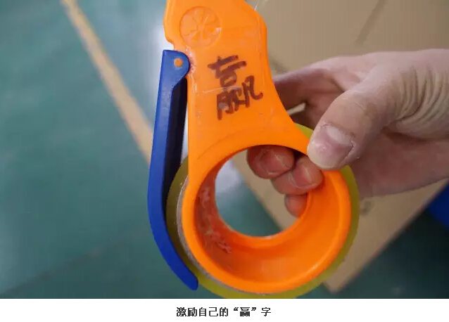 在二車間一通尋找,吸管妞才發(fā)現(xiàn)了張楠。他笑著說:“我不是在封箱,就是在去封箱的路上,不好找哦!”2013年,從西安來義烏找工作的張楠進(jìn)入雙童,在二車間從事封箱的工作。談起當(dāng)初進(jìn)雙童的時(shí)候,張楠會(huì)心一笑:“這都是緣分??!在市場上看到“雙童”的招聘信息,因此和雙童結(jié)緣,在此扎根?!鼻魄葡旅孢@個(gè)可是張楠“吃飯的家伙”——封箱膠帶機(jī),上面寫著一個(gè)字:“贏”。問其意義,張楠表示這是“愛拼才會(huì)贏”的意思,他只想把自己手頭的工作做好做精,以此來激勵(lì)自己。