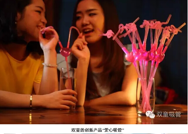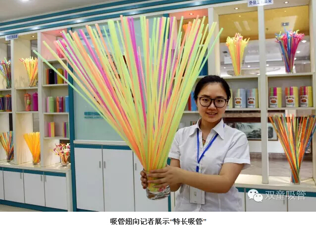 “其中,有30多種是近年開(kāi)發(fā)的新產(chǎn)品。”李二橋說(shuō),陳列的各式各樣吸管,既有幾厘一支的,也有10元一支的。他拿起一款叫做“風(fēng)車吸管”的產(chǎn)品,只見(jiàn)吸管的中上部安裝著一個(gè)透明的球體,球體內(nèi)懸著一只小小的風(fēng)車,吮吸飲料,里面的風(fēng)車就會(huì)快速旋轉(zhuǎn)。“剛開(kāi)發(fā)出來(lái)時(shí),由員工的子女進(jìn)行了試用,孩子們都把它們當(dāng)成了玩具,這是一款十分具有個(gè)性特點(diǎn)的產(chǎn)品。‘雙童吸管’類似的創(chuàng)新產(chǎn)品有40多類,總計(jì)300多種。”