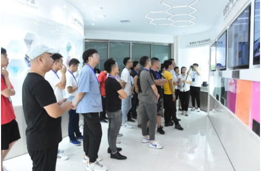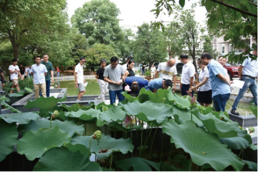 學員們正在彎腰觀察中水回用系統(tǒng)