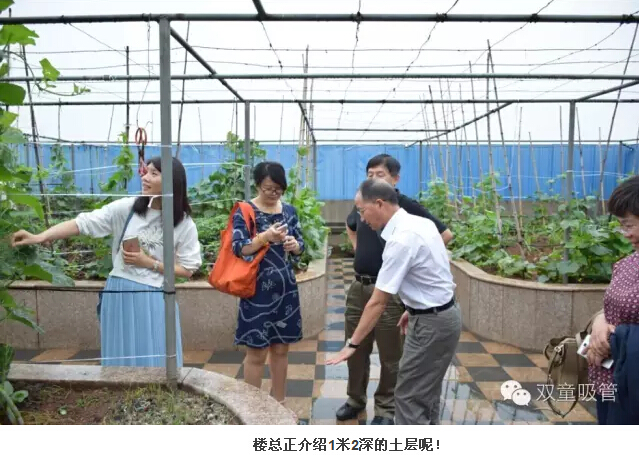 來到屋頂菜園時(shí),看到各這么多新鮮的蔬菜瓜果,大家都淡定不起來了呢!當(dāng)家人樓總向大伙介紹了種植區(qū)1米2深的土層,看到這里大家紛紛開始敬佩樓總對工廠的設(shè)計(jì)。