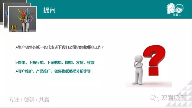 為了鞏固這堂課的內(nèi)容,咱們的朱講師也是讓童鞋們活學(xué)活用,通過一些具體的銷售訂單讓各部門的童鞋們回答自己所要做的工作。通過這次學(xué)習(xí)會(huì),也是為了增進(jìn)各部門之間的溝通,減少工作中的誤會(huì),提高工作效率。