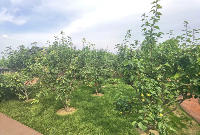 在“雙童”新廠區(qū)5000平米的“空中果園”里,200多棵的果樹正在瘋狂成長(zhǎng),漸漸開始結(jié)果啦!看這邊的梨樹林,春天時(shí)梨花開滿了枝丫,果不其然現(xiàn)在就已經(jīng)果實(shí)累累,每棵樹都結(jié)了好幾十顆梨子!