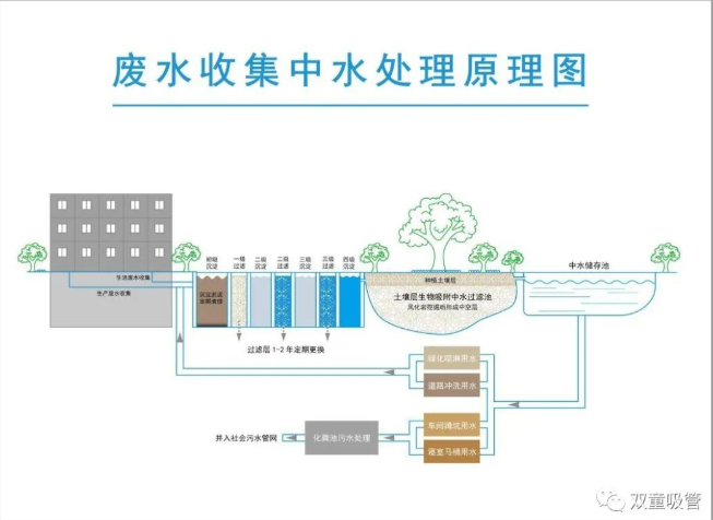 為此,“雙童”在廠區(qū)內(nèi)設有一套“廢水收集中水回用系統(tǒng)”,能夠?qū)T工洗臉、洗澡、洗衣服所產(chǎn)生的廢水通過管道匯集,用細沙、細木炭、石英砂、活性炭等進行隔離過濾和技術處理。