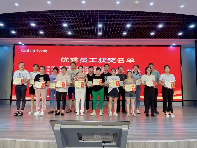 大會的第一項議程就是優(yōu)秀員工表彰,在第二季度中共23名一線員工脫穎而出,他們之中,有剛?cè)霃S工作時間不長的新人、有在一線耕耘良久的“老兵”、還有后勤普通的食堂幫工……但他們有一個共同的標簽:勤勤懇懇的“雙童”人!
