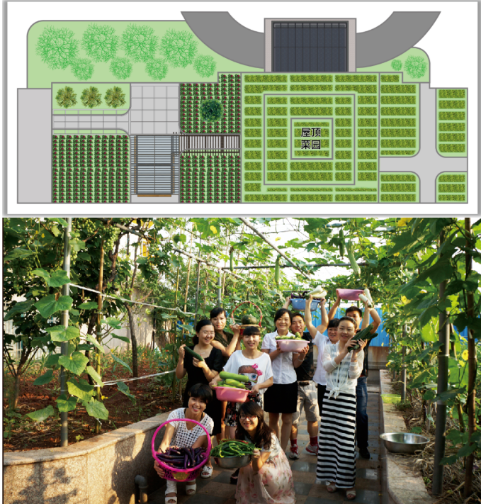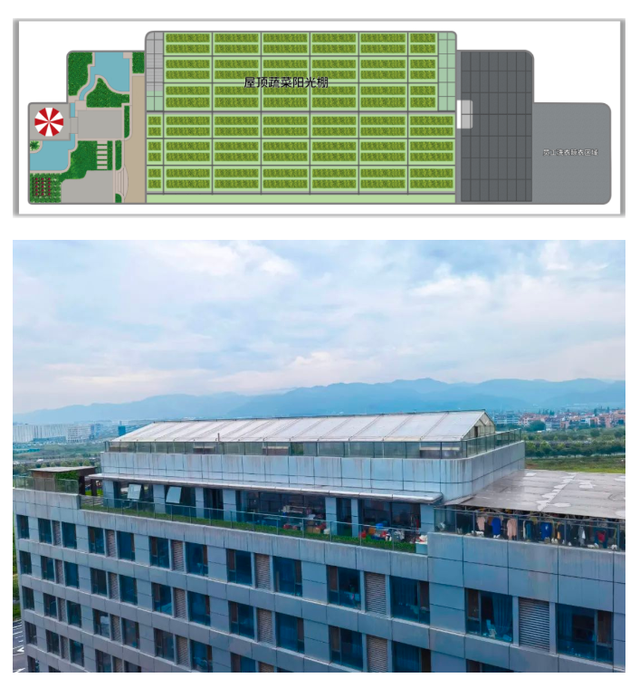 在一期行政樓的屋頂上,則是一片菜園,這里種植了十多個品種的有機(jī)蔬菜。走進(jìn)菜園,南瓜、黃瓜、茄子和絲瓜等蔬菜掛滿枝頭,豐收時節(jié)“雙童人”身處工業(yè)區(qū)也能體會別樣的田園樂趣!
