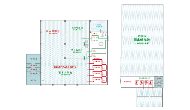 “雙童”在廠區(qū)道路、屋頂、綠化地等可以收集雨水的區(qū)域建造了一百多個雨水收集口,并用管道分別連接到各個廠區(qū)的雨水儲存池里,這幾個池子總量相加為4500噸!